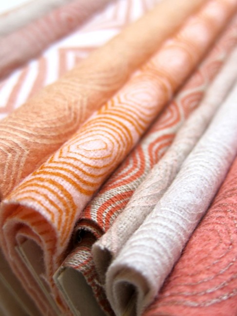 Les carapaces protectrices sont réinterprétées dans des matières souples et douces afin d’y intégrer la notion de confort. Délaissant les caractéristiques de rigidité et de solidité qui leur sont propres, les enveloppes écailleuses deviennent moelleuses dans les propositions de multi-couches découpées selon un motif d’écailles. Ces textiles deviennent des plaids, des revêtements de canapé ou des panneaux muraux.