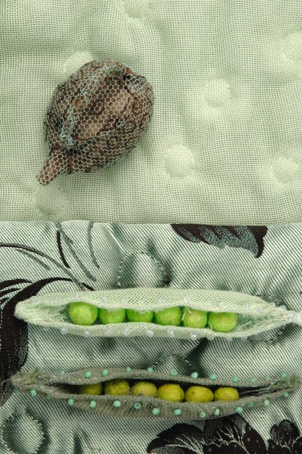 Le conte de la princesse au petit pois d’Andersen est le point de départ d’un cadavre exquis d’objets textiles qui composent un univers tout vert.